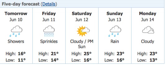 not doing the velo quebec ride - not in the mood to pay over $120 for the 3 of us to ride in cold rain... we'll wake up and play it by ear - if it's not pouring then we'll ride in the neighbourhood so we're never more than 30 minutes away in case it gets really miserable... I tell you - mother nature is not cooperating with us much for our training rides! so I'm hoping she shows up with perfect overcast 20 degree weather with no sun or rain for the ride!